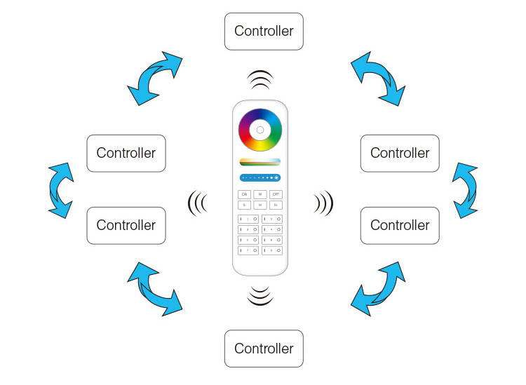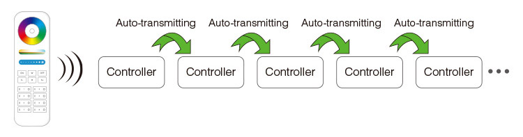 ***Система автосинхронизации приемников - приемники работающие на одном режиме смены цвета (от одного дистанционного пульта) и с одной скоростью, автоматически синхронизируются не зависимо от времени включения каждого из них.